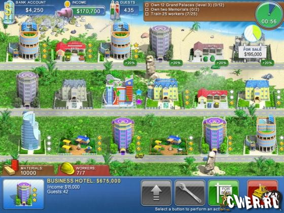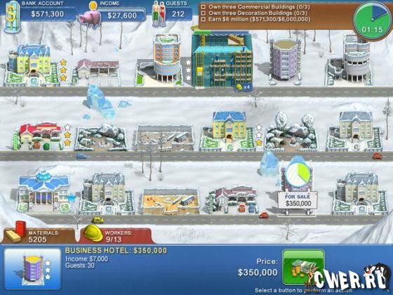 Перед Вами финальная версия новой, стратегической бизнес-игры, где Вы поведете свою строительную корпорацию к победам в отельном бизнесе. Базовые принципы такие же как в игре «Построй-ка»: Вы будете возводить отели, коммерческую недвижимость и технические здания.