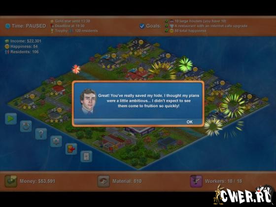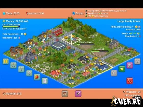 Перед Вами экономический симулятор с очень захватывающим геймплеем и красочной графикой. Постройте идиллическую окрестность с большим количеством зданий и держите Ваших жителей счастливыми, оказывая все услуги, в которых они нуждаются, и они вознаградят Вас опрятной прибылью. Вам решать, как играть - Вы можете работать свой путь к вершине.