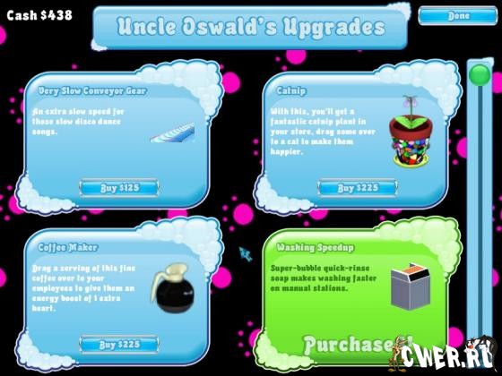 По счастью, её слова услышал дядюшка Освальдо и изобрёл хитроумный моющий агрегат. Теперь Сьюзи решает облегчить жизнь всем владельцам кошек, а потому открывает салон в стиле 70-х гг. Помогите ей управлять её детищем, вымывайте начисто всю грязь из шерсти милых питомцев, сушите и стригите их!