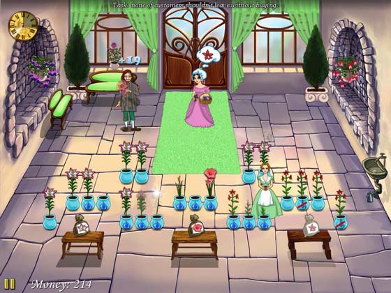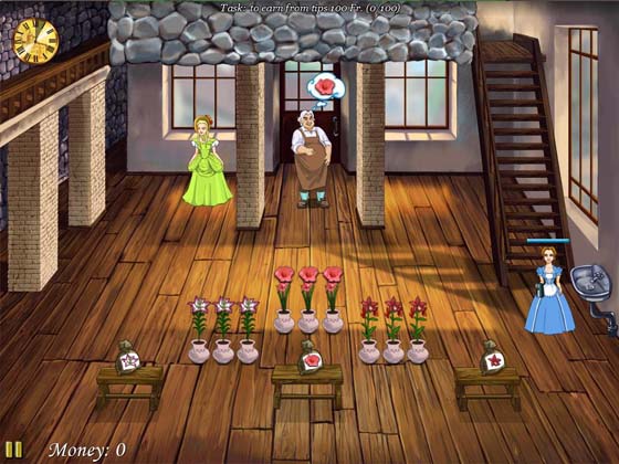 Вместе с Мари вы займетесь обустройством цветочной лавки, будете выращивать тюльпаны, розы и пионы, вести бойкую торговлю. В этом бизнесе нельзя терять ни секунды, ведь покупатели могут передумать и уйти к конкурентам. Выполняйте вовремя все заказы, и благодарные посетители оставят Мари внушительные чаевые.