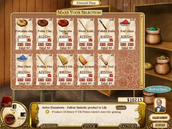 Игра наследница "Винодела". Время для творчества. Когда вы получили в наследство компанию по производству фарфора Кавендишей, она была заброшена и требовала много работы. Некогда великая компания, производящая столовый фарфор, сейчас нуждается в новых рецептах ,чтобы восстановить репутацию элегантной и качественной посуды. От классики к современности, вы будете разыскивать лучшие рецепты и ингредиенты по всему миру, а затем оттачивать производство каждой линии. Только совершенная глазировка и формовка сделают ваш фарфор лучшим.