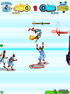 Игра для мобильных телефонов. Соревнуйтесь с игроками NBA в зрелищных стритбольных поединках «2 на 2». Размеры экрана: 128х128, 128х160, 176х208, 240х320.