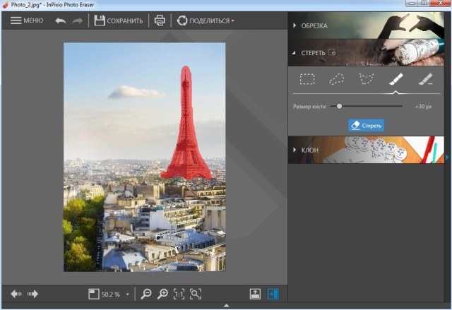 Photo eRaser - программа для удаления ненужных объектов и ретуширования фотографий. Вы сможете использовать эту программу для удаления текста, логотипов, царапин с фотографий, линий проводов или рекламных щитов и других посторонних предметов.